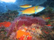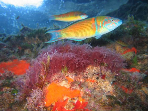 Zurück in Porto de Soller entdeckten wir am folgenden Tag den tollen Tauchplatz Grotta Azul, direkt 1 Meile westlich vom Hafen an den eindrucksvollen Steilwänden gelegen. In dem geräumigen Tunnel hätte leicht eine großer Lastwagen platz. Tatsächlich fanden wir einige kleinere Zackis und die für das Mittelmeer typischen Brassen. So gut es sich mit den heißen Temperaturen vereinbaren ließ genossen wir die schönen Kletterrouten und beschlossen auch nach einigen Tagen den Tauchplatz Foradada in der gleichnamigen Ankerbucht zu erforschen, was uns noch einiges Kopfzerbrechen bereiten sollte. Bei völliger Windstille und schönstem Wetter ankerten wir wie viele andere Segler auch direkt vor der eindrucksvollen über 80 Meter hohen Felswand des Kaps und freuten uns unheimlich darauf den Traumankerplatz Abends für uns alleine zu haben, weil wir ahnten, dass alle Charterboote am Abend in den sicheren Hafen segeln werden.