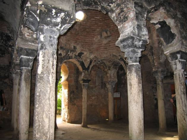 Tags darauf begleiteten wir Clemens und Franziska nach Palma, wo die beiden ihren Flug nach Hause antraten und wir uns sogleich nach dem nächsten Tauchshop erkundigten, der auch wirklich einen passenden Ersatzteil für unser desolates Flaschenventil lagernd hatte. Obwohl die unglaubliche Hitze von über 40 Grad uns sehr zu schaffen machte genossen wir den Sight Seeing Trip durch die Stadt, bestaunten die alten Festungen und Gaudis Kathedrale sowie ein altes maurisches Bad, welches uns mit den kleinen sternförmigen Dachluken und dem schlüssellochförmigen Eingangsportal sehr an jene Bäder erinnerte, die wir in Grenada in der Alhambra bestaunten.