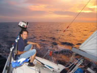 Nun galt es sich von Michele zu verabschieden und dafür Franziska und Clemens, zwei Uhrmacherkollegen von Klaus an Bord zu begrüßen. Nachdem die erste Prüfung - mit dem nassen Dingi und dem Gepäck zum Boot zu rudern - bestanden war, wurden die beiden richtige Seebären und standen mit uns Flauten mit wechselhaften Winden meist gegenan und etliche Nachtfahrten zu den Balearen durch. Lediglich ein kleiner Barrakuda sorgte für Abwechslung, da er es schaffte nachdem wir ihn wegen mangelnder Größe befreit hatten unmittelbar darauf noch einmal anzubeißen. In Carthagena mussten wir einen Zwischenstopp einlegen um unsere stark reduzierten Dieselvorräte wieder aufzustocken.