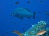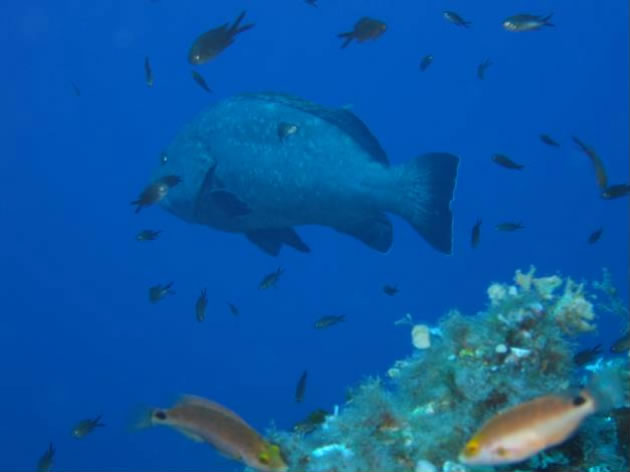 Der Tag wurde für uns perfekt als wir zufällig bei einem Tauchgang im Osten der Insel zwei über 1 Meter großen Zackenbarschen begegneten.