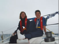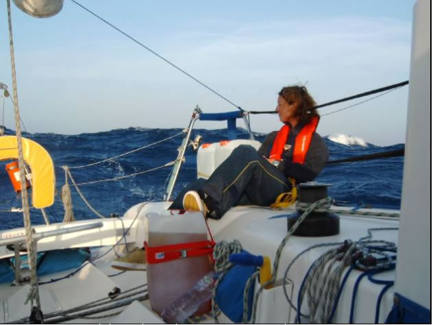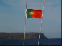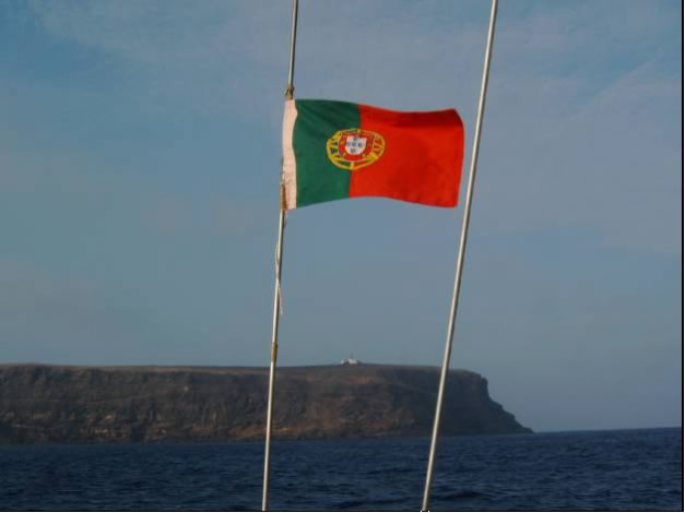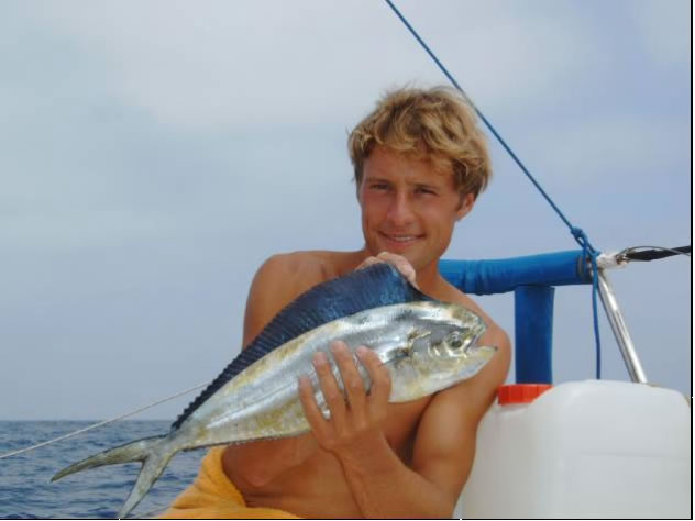 Der Wind wurde noch stärker, wir waren des Steuerns müde und ließen nur mehr die Sturmfock stehen. Unter Autopilot ging es mit nur mehr 7 Knoten Speed und unverändert hohen Wellen in die Nacht. Das war also der Atlantik. Fragen, wie ob ich mich überschätzt hätte oder ob das immer so weitergeht, quälten mich in dieser Nacht ungemein. Nicht genug, dass das Groß bei einer Patenthalse nur gebremst durch den Bullenstander eingerissen und 3 Mastrutscher zerfetzt waren - während einer Nachtwache, wo ich im Cockpit angehängt schlief während Conny den Autopiloten bewachte krachte plötzlich eine Welle derart über uns zusammen, dass ich neben der ohnehin schon außerordentlichen Luftfeuchtigkeit zusätzlich eine Komplettwäsche bekam und sich sogar Connys Automatikrettungsweste aufblies. Gott sei Dank war es Nacht und ich schlief - außer dem Krachen hatte ich nichts mitbekommen. Der nächste Tag versöhnte uns wieder mit dem Meer: Gemütlicher Wind und Flaute bescherten uns eine 50cm Goldmakrele die sorgsam filetiert und von Thilo in Knoblauch gebraten zu einem außerordentlichen leckeren Abendessen zubereitet wurde.