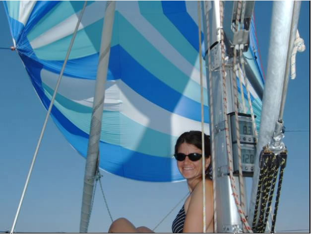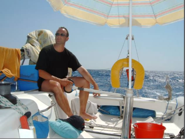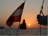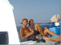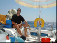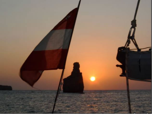 Als Ibiza außer Sichtweite war, stellte sich auch eine leichte Brise aus SO ein und wir steigerten uns mit dem Wind unter Spi schnell auf bis zu 10 Knoten. Natürlich kam was kommen musste - alles Schöne geht zu Ende - der Leichtwindspi vertörnte sich aufgrund der starken Kursabweichungen des Autopiloten und bei dem nachfolgenden Rettungsversuch opferte ich meine Lieblingssonnenbrille - die einzig Teure, die ich je kaufte - an Neptun. Zu guter Letzt riss auch noch der Spi zwei Meter lang auf und wir konnten fortan nur mehr mit dem dickeren und kleineren Standardspi fahren.
