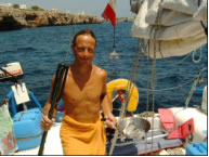 Ibiza wollten wir im Uhrzeigersinn entsprechend den Empfehlungen des Hafenführers umrunden, was uns wieder zur schroffen Nord-Westküste mit noch relativ naturbelassenen Ankerbuchten und Traumtauchplätzen brachte. Ibiza stand ganz im Zeichen von Tauchen und Erholung. Vor dem Wind liefen wir von einer Traumsteilwand in Portinatx zu mehreren schönen Tauchplätzen nahe der Cala Birinijas mit eindrucksvollen Unterwasserhöhlen die durch viele natürliche Fenster den Blick auf Zackenbärsche, große Brassenschwärme, Muränen und das herrliche Blau des Meeres freigaben. Auf der Isla Murada hatten wir ein weniger angenehmes Erlebnis mit einem deutschen Tauchschulbesitzer, der sich um seine Tauchattraktionen sorgte und uns wegen der Harpune gleich fotografierte und die Polizei auf den Hals hetzen wollte. In Rekordzeit flüchteten wir zum Ankerplatz, legten ab und hatten einen eindrucksvollen Tauchgang bei den Unterwasserhöhlen der Islas Margarithas, diesmal ohne Harpune. Die im Hafenführer angepriesenen Traumankerbuchten Cala Badella und Cala Sahona waren aufgrund der dort ankernden Massen eher enttäuschend und besonders die Cala Sahona auf der Insel Formentor ist in meiner Erinnerung stark mit einer sechsstündigen Positionslichtreparatur verknüpft, da eine Lötstelle am mühevoll neu verlegten Kabel aufgegangen ist und wir wieder "Kabelfischen" aufgrund der erneut gerissenen Führungsleine spielen durften. In Vettermanns Buch "Die Irrfahrten des Barawitzka" schmunzelte ich noch über die Stelle, wo der Klabautermann die Bordelektronik vernichtete und die Ursache rätselhaft ungelöst blieb. Unser Positionslicht hat uns inzwischen gehörig Respekt vor dem Klabautermann eingeflößt - es funktioniert derzeit nur mehr nach einer gewissen "Aufwärmphase".