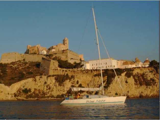 Mit dem Ballermann höchstpersönlich kamen wir erst in Ibiza Stadt in Berührung. Viele Touristen dort sind allerdings schon derart schräg, dass die Flaniermeile schon wieder eine zusätzliche Attraktion für Ibiza darstellt. Nachdem ein Liegeplatz in Ibiza Stadt an die hundert Euro / Nacht mit Wasser extra kostet zogen wir es vor unsere eigene Marina direkt unter der Burg und der Altstadt außerhalb des Wellenbrechers zu gründen. In Kürze waren wir umringt von anderen Fahrtenseglern, die im Hafen scheinbar auch nicht ganz das gefunden hatten, was sie suchten. Neben dem obligatorischen Eis nutzen wir auch die Gelegenheit unseren zweiten - inzwischen ja auch stark "erkrankten" - Autopiloten bei der hiesigen Simradvertretung zu reklamieren. Wir hatten aber nicht viel Hoffnung, da es in Ibiza keinen Generalvertreter, sondern nur einen kleinen Händler gab, der sicher keine Ersatzteile oder Ersatzgeräte hatte. Überraschenderweise nahm sich Mr. Dews von Dews Yachtelectronics, ein gebürtiger Engländer sogar in seiner Mittagspause Zeit unseren mehr oder weniger treuen Steuermann auseinander zu nehmen und ihm gemeinsam mit uns auf den Zahn zu fühlen, um das Rätsel des Autopilotensterbens auf der Blue Note zu lüften. Nach dem Tausch aller elektronischen Komponenten und mehreren Rücksprachen mit Simrad in England stellten wir fest, dass Simrad in der Baureihe mit der Seriennummer SY zu schwache Dauermagneten beim Ruderlagesensor einbaute und anstelle einer Rückholaktion einfach die defekten Geräte auf Kosten der Kunden auslieferte. Da auch hier kein Gerät gleicher Bauart lagernd war,e mussten wir wieder auf den teureren TP20 aufzahlen und hatten somit das Problem vorerst gelöst. Die wunderschöne Altstadt Ibizas tröstete uns über diesen kleinen Verlust hinweg und außerdem sollten morgen unsere Mitsegler Selma und Thilo kommen und mit denen soll es zu unserem nächsten Ziel weitergehen: Madeira.