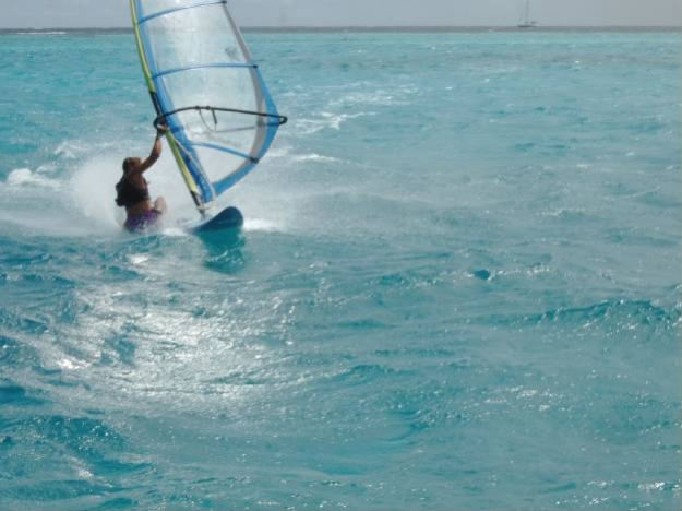 Während Klaus und Christian einen Tag lang Robinson spielten, Kokosnüsse knackten und das Riff erforschten sahen Conny und ich beim Tauchen Muränen, Barrakudas und gleich drei Langusten, die leider ein wenig scheu waren. Auch das Windsurfen kam nicht zu kurz - flaches Wasser und konstante 5 Bft ließen mein Herz höher schlagen.