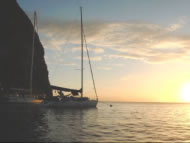 Gemütliche 4 Bft Halbwind - ein Segeltraum - der Atlantik zeigte sich Christian und Klaus von seiner gemütlichsten Seite! Ein paar Stunden später fiel unser Anker in dem kleinen Dorf Chateaubelair am Fuße des 1000 Meter hohen Vulkans Soufriere, den Christian und ich besteigen wollten. Die Steilwand, die wir auf der Nordostseite von Chataeubelair Island entdeckten, war unglaublich - die mit den buntesten Korallen bewachsene, 40 Meter hohe Wand aus Vulkangestein schloss sich wie eine Höhle über unseren Köpfen. Die Nacht war etwas ungemütlich - der Schwell aus Norden rollte direkt in die Bucht und unser Heim wurde wieder zum Schaukelpferdchen. Tags darauf machten wir St. Vincent unsicher - so glaubten wir zumindest bis wir zum Boot zurückkamen.....