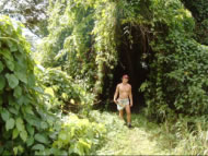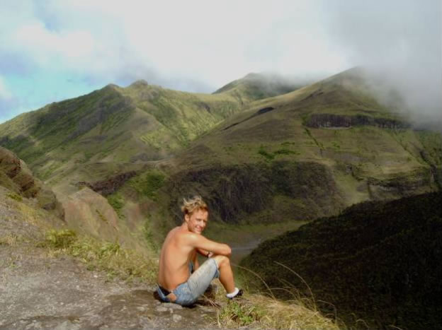 Schon die Landung mit dem Dingi in der Brandung ging etwas in die Hose und so wanderten Christian und ich mit nassen Schuhen auf den Soufriere während Conny und Klaus die Dark View Wasserfälle besichtigten. Der Wanderweg war wunderschön, erschien uns aber endlos. Dafür aber war der Gipfel wolkenfrei und wir hatten die schönste Aussicht in den großen Krater mit seinem Lavakegel in der Mitte. Erst 1979 kam es zum letzten Ausbruch und zum Abrinnen des Kratersees, erzählte uns ein Rasta der mit seinem Großeinkauf aus dem Ort (zwei kleinen Fischen im Plastiksackerl) zu seinem selbstgewählten Domizil in den Bergen wanderte. Um den Weg zur Blue Note abzukürzen kletterten wir einen steilen Hang in einem leeren Flusslauf, der statt Wasser tausende verrottete Kokosnüsse führte, zum Meer. Als ich Connys Gesicht sah, die uns mit dem Dingi abholte, wusste ich es war etwas passiert. Jemand hatte in unser Boot eingebrochen und alles durchwühlt. Nichts war gestohlen bis auf Connys Tauchlampe, einem Bier, ein Apfel und der Mastfuß meines Surfboards - Laptop, Tauchcomputer, GPS und unsere sonstigen Schätze waren unangetastet - uns fiel ein Stein vom Herzen. In dem nächsten größeren Ort Barrouallie wollten wir noch am selben Tag eine Verlustanzeige erstatten und einklarieren.