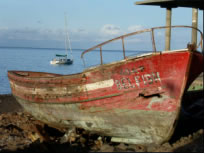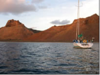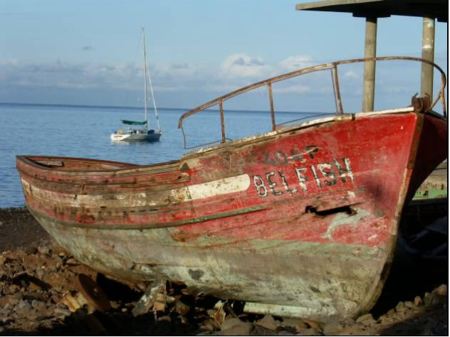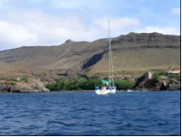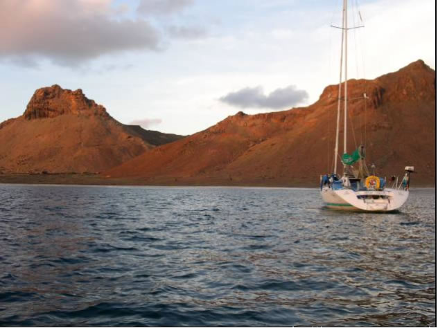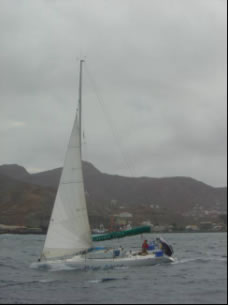 Nachdem wir in der Abenddämmerung noch einige brauchbare Teile wie Schäkel und Niro - Umlenkrolle von dem uns gegenüber liegenden Wrack abgeschraubt hatten, lichteten wir eines Abends den Anker. Mambo schien noch länger hier in Sal bleiben zu müssen und so segelten wir in einer rasanten Nachtfahrt mit 8 Knoten Schnitt zur Nachbarinsel Sao Nicolau, wo wir im Paradies landeten.