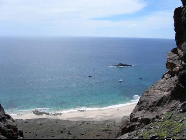 Auf der Insel Raso angekommen fanden wir in 20 Meter Wassertiefe zwar optimale Tauchplätze aber zum Ankern war es hier nicht so richtig einladend. Noch dazu wurde hier erst vor 3 Wochen ein Deutscher von einem Hai gefressen, nachdem er angeblich in dem von den Abfällen der Fischer verschmutzten Wasser gebadet hatte.