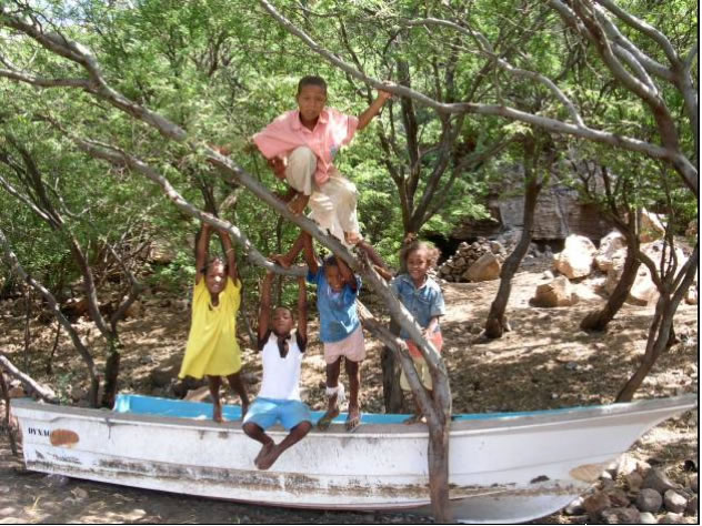 Um so überraschter waren wir als eines Abends ein Fischer vorbeikam und uns mit den Worten "Telefoni - Telefoni" aufforderte in den Ort zu kommen. Die Hafenbehörde? Probleme weil wir hier in Sao Nicolau nicht gleich den Hauptort zum Einklarieren angelaufen haben? Also Schlauchboot wieder ausgepackt und mit der Brandung etwas umständlich am Strand gelandet. Unglaublich aber wahr: Unsere Eltern haben Tarafal alarmiert, weil keine Nachricht von uns kam, da das Handy keinen Empfang hatte. (warum sollte es auch - hier gab es im ganzen Ort nur ein Festnetztelefon und nicht einmal eine Strasse) Eine Suchaktion wurde eingeleitet und wir wurden selbst an diesem entlegendsten Winkel der Welt gefunden, in das Haus des Bürgermeisters geführt und konnten dort mittels des einzigen Telefons im Ort die beruhigende Nachricht an unsere besorgten Eltern weiterleiten.