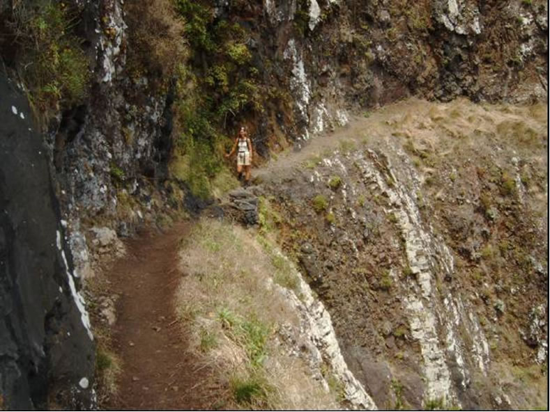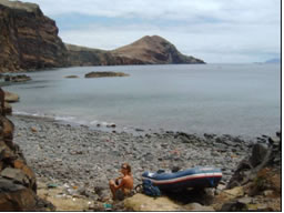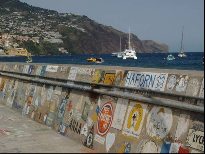Der Dunst, der fast ständig Madeiras Gipfeln umhüllt, gab ab und zu einmalige Blicke auf mitten in gewaltige Schluchten eingebettete Bergdörfer und die benachbarten Gipfel frei. Nach der pflichtgemäßen Madeirawein Verkostung hieß es wieder Anker auf und zurück nach Machico, von wo wir eine Wanderung über den Boca do Risco in das 12 Kilometer entfernte Fischerdorf Porto da Cruz unternahmen. Der Wanderweg wurde von Feigen, Weintrauben und Brombeeren förmlich überwuchert und so kam es, dass wir für die 12 Kilometer über 5 Stunden benötigten und schon wenige Kilometer von unserem Boot entfernt Bauchweh von den vielen Leckereien hatten. Die letzten Kilometer der Wanderung führten uns über einem schmalen Pfad entlang von 400 Meter senkrecht abfallenden Klippen, wo sich uns ein herrlicher Ausblick über die für Segelboote kaum zugängliche Nordküste Madeiras bot.