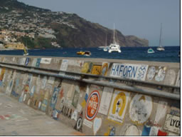 Die Sünden des Vorabends büßten wir bei der Biketour am nächsten Tag auf den höchsten Gipfel der Insel, von dem wir die ganze Insel von immerhin 500 Höhenmetern überblicken konnten. Unser erstes Ziel in Madeira sollte Machico sein, die älteste Stadt in Madeira und jene Bucht in der einst der Entdecker Zarco landete und von wo aus Madeira besiedelt wurde. Entgegen der Beschreibung des Hafenführers erwartete uns eine sichere Mole die obendrein nichts kostete. In einer gemütlichen Kneipe feierten wir Abschied von unseren Mitseglern Selma und Thilo, die wir inzwischen schon sehr lieb gewonnen hatten, denn am nächsten Tag stand Funchal am Programm, wo sich unsere Wege trennen sollten. Zwar war der Ankerplatz im Hafen von Funchal nicht gerade gegen Schwell geschützt, aber dafür kostete er nichts und der überaus freundliche Hafenmeister bot uns sogar die Schlüsseln für die Duschen in der Marina an. Vor lauter Gastfreundschaft war ich richtig skeptisch und lehnte vorerst ab, da wir vom Mittelmeer andere Dinge gewohnt waren. Wo auch immer man Leute in Madeira traf, überall stießen wir auf hilfsbereite Menschen und wurden unglaublich freundlich behandelt. Während wir uns als Segler im Mittelmeer lediglich wie "unerwünschte" Touristen gefühlt haben, wurden wir hier stets wie Gäste behandelt. Wie lange es wohl noch dauert bis auch Madeira von tausenden Charterbooten überschwemmt wird, der Tourismus boomt und die Menschen hier die altbekannte Dollarmiene aufsetzen. Es wird ja schon in einigen Fischerdörfern fleißig an der Fertigstellung von Marinas gebaut.... . Auch der Flughafen wurde vor erst zwei Jahren ausgebaut. Bleibt uns nur unseren Aufenthalt etwas zu verlängern und die Zeit hier im Paradies zu genießen - was wir auch taten. Von unserer Wohnung hatten wir einen tollen Blick auf die Altstadt, den wir vor allem Abends bei Wein und einem guten Abendessen genossen.