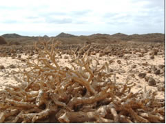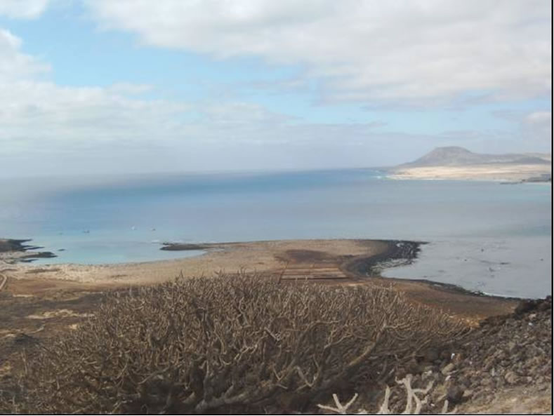 Nach dem Erwachen bot sich uns eigentlich wie überall in Lanzarote und Fuerteventura ein Anblick von Wüste und trostloser Trockenheit ab und zu durchsetzt mit monströsen Ferienanlagen die rein von der Größe und dem Prunk beinahe mit den eindrucksvolleren historischen Bauwerken in Paris vergleichbar sind. Abgesehen von ein paar Palmen vor den Hotels kann man die restlichen Pflanzen auf den Inseln an einer Hand abzählen. Gott sei Dank sind wir mit unserem Boot in der Lage von Land schwer zugängliche Ankerbuchten mit schönen Sandstränden zu erreichen. Diese Trockenheit liegt wohl einerseits an der Nähe zu Afrika, das weniger als 100 Seemeilen entfernt liegt und andererseits an der Tatsache das die östlichen Kanareninseln keine allzu hohen Berge aufweisen die Wolken aufstauen und für die Erzeugung häufigen Regens garantieren können.