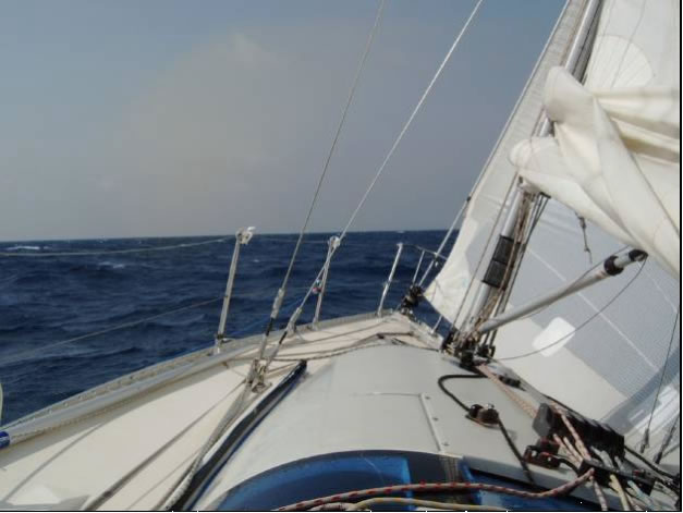 Fünfzig Meilen vor Otranto frischte der Wind auf 6Bft auf, drehte auf SO, kam also von gegenan und wir kämpften uns die kurze Strecke von Brindisi nach Otranto mit doppelt gerefftem Großsegel durch.