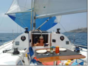 Am nächsten Morgen aber ging es nun endgültig in die Ferne - nichts kann uns nun noch aufhalten. Denkste: Der nagelneue Autopilot, der bis auf seine akustische Funktion tadellos funktioniert hatte, gab seinen Geist auf. Gott sei Dank haben wir einen Reserveautopiloten mit. Aber wie kann die Reklamation erfolgen? Als Papa die Reklamation in Malta via Hndy organisiert hatte ergab ein weiterer Test ein paar Stunden später: das verdammte Ding funktionierte wieder - es ist zum aus der Haut fahren mit diesen elektrischen Autopiloten!