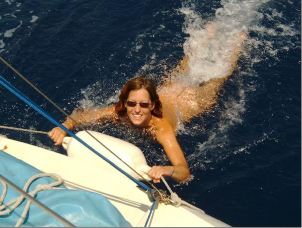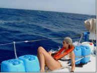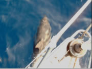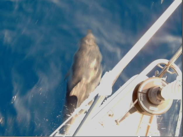Und nun endlich gleich zwei High Lights: Wind und Delfine, die mit uns schwammen und gut 5 Minuten unter dem Bug durchtauchten - welch anmutige Tiere das sind! Der Anblick keines anderen Tieres kann den Menschen wohl so viel Freude bereiten.
