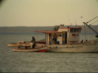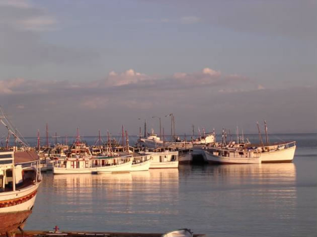 Einziger Haken an der Sache war der Untergrund, der aus Feuerkorallen bestand und einem Binnenwellenreiter wie mir den Gedanken an einen Surfversuch ersparte. Schweren Herzens blieb mir keine andere Wahl als den Profis zuzusehen. Schön war dafür das Wrack der alten Autofähre etwa eine halbe Meile vor der Bucht in etwa 40 Meter Wassertiefe. Schon ein wenig unheimlich war es mit dem Dingi bei den meterhohen Wellen so weit raus zu fahren. Auch die Sicht war eher wie am Neufeldersee, bedingt durch das trübe Wasser vom Orinoco, das aber wiederum Grundlage für den einzigartigen Fischreichtum in dieser Gegend ist. Wir tauchten mitten in einem gigantischen Fischschwarm ab - um uns wurde es völlig schwarz. Schemenhaft sahen wir die riesigen Zahnbrassen, die um das Wrack kreisten. Selbst in 30 Meter wurde man durch den Schwell meterweit hin und hergeschleudert was das Durchtauchen der Eingänge in das Wrack zu einem Abenteuer machte. Ein weitere Tauchgang am Riff war wegen der hohen Wellen und der schlechten Sicht weniger aufregend und so lichteten wir bei mäßigem Wind den Anker Richtung Charlotteville, dem nördlichsten Fischerdorf.