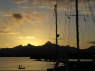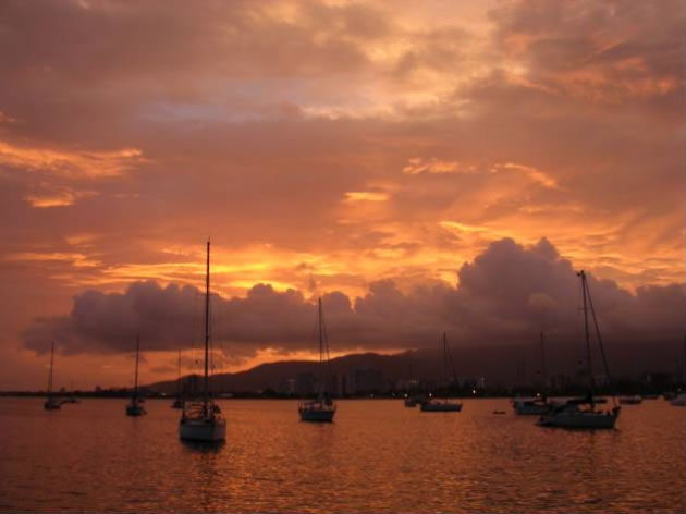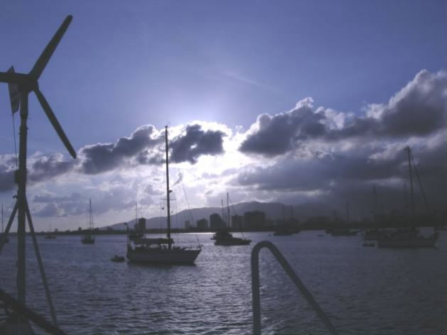 Die nächsten drei Tage gab es jedenfalls Kingfisch in allen Variationen. Das zarte weiße Fleisch schmeckt eher wie Huhn als Fisch und war wirklich ein Geschmackserlebnis. Wie geplant liefen wir bei Sonnenaufgang in Trinidad - Chaguaramas, der Marinametropole schlechthin ein und erledigten gleich mal die Formalitäten und besuchten den Segelmacher. Die nächsten drei Tage war wieder der typische Hafenstress angesagt: Einklarieren, Ausklarieren, Segelmacher, Internet, Einkaufen, kleinere Reparaturen und Ersatzteilbeschaffung. Das alles bei 40 Grad schwüler Tropenhitze und wir waren im wahrsten Sinne wieder reif für die Insel - die Testigos. Abends vor unserem Aufbruch nach Venezuela wollten wir noch einen gemütlichen Abend in der Scottlandsbay verbringen, wo wir uns mit Walter, einem Österreicher mit seiner Yacht China Clipper auf Bier und Brezeln verabredet hatten.