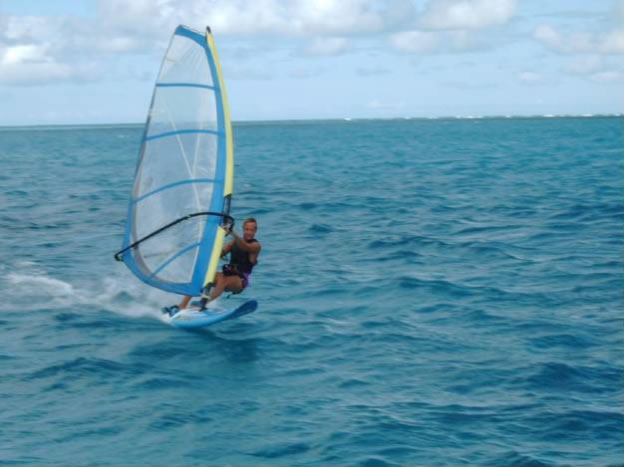 Freundschaft war schnell geschlossen und beinahe jeden Abend saßen wir auf der riesigen 50 Fuß Heldenberg zusammen und plauderten und lachten. Mark, der schon in jungen Jahren einige erfolgreiche Firmen gegründet und wieder verkauft hatte, war ein ziemlicher Tüftler und erfand zum Wohle aller Segler den Diveglider, mit dem man sich hinter dem Dingi nachziehen lassen kann und problemlos ohne aufwendige Technik 15m abtauchen und relativ lange unten bleiben kann. Wir konnten vom Divegliden nicht genug bekommen und können Marks Erfindung nur jedem Dingibesitzer weiterempfehlen. (Näheres unter www.diveglider.com) Von den Beiden lernten wir auch wie man aus einer Pflanze, die wie Gras auf den flachen Inseln Venezuelas wächst, leckeres Pesto für Spagetti herstellen kann. Bei einem gemeinsamen Tauchgang an der Steilwand auf der Südseite der Hauptinsel Isla Sur fingen wir uns den passenden Fisch fürs Abendessen und Tina bereitete ihn mit Knoblauch und Sojasouce derart raffiniert zu, dass er wie Grillkotelette schmeckte. Mit dem Surfbrett erforschte ich das weitläufige Riff und konnte nicht genug davon bekommen bei konstanten 6 Beaufort über das spiegelglatte in allen Farben schillernde Wasser zu rasen.