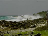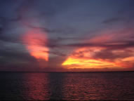 Unser nächstes Ziel war nun das nur 40 Meilen entfernte Bonaire das als Tauchparadies gilt und wo wir nach wenigen Stunden rasanter Überfahrt bei 30 Knoten Wind und 4 Meter hohen Wellen nur mit Genua 2 bei Sonnenuntergang an einer der hier vorgeschriebenen Mooringtonnen festmachten. An der Luvseite der flachen Insel brechen sich die riesigen Brecher, weshalb die Leeseite völlig flaches und klares Wasser aufweist. Dazu kommt noch, dass die gesamte Küste der Insel unter Wasser bis in große Tiefen fast senkrecht abbricht und die Steilhänge mit wirklich einzigartig gut erhaltenen und unglaublich vielfältigen Korallen bewachsen ist. Entlang der 20 Meilen langen Küste wurden alle paar hundert Meter vom Marineparkmanagement Mooringtonnen für Tauchboote ausgebracht, die komfortables Tauchen ermöglichen. Ankern ist überall verboten und man muss eine 5 Dollar Mooring vor dem Hauptort der Insel nehmen. Als wir in Lee der Insel kamen konnten wir gar nicht glauben wie glatt das Wasser trotz der 30 Knoten Wind war - eben hatten uns die 4 Meterbrecher noch überflutet. Täglich tauchten wir mehrmals an legendären Stellen, wie dem Wrack der Hilma Hooker, der hundert Jahre alten Windjammer und an etlichen Steilwänden entlang der Leeküste und um Kleinbonaire.