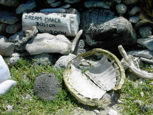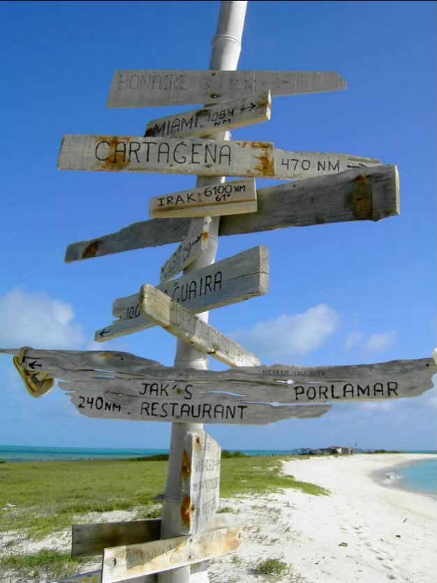 Einklarierungsformalitäten kümmern, die man hier nur mittels Agent erledigen kann, der natürlich auch eine Provision kassiert. Für uns ist Margarita die letzte günstige Einkaufsmöglichkeit vor unserer Atlantiküberquerung, weshalb wir das ganze Boot komplett mit Kisten voller Lebensmittel gefüllt hatten. Wir waren froh als wir morgens um 6 Uhr den Anker mit Ziel Tortuga lichteten und bei leichtem Wind und kaum Wellen unserer neuen "Trauminsel" entgegenfuhren. Aus dem Traum wurde aber eine Katastrophenüberfahrt - bei einer Halse zerfetzte diesmal irreparabel der untere Teil des Großsegels, nach der Inselabdeckung war es auch vorbei mit dem ruhigen Wasser - 4 Meter hoher Schwell aus Nord spielte mit uns Ping Pong und als bei einer Monsterwelle die ausgebaumte Genua querschlug, zerfetzte es auch noch den Spibaumbeschlag. Schließlich waren wir laut GPS eine Stunde vor Sonnenuntergang nur mehr 5 Meilen von Tortuga entfernt - konnten aber die Insel immer noch nicht sehen. Als die Sonne am Horizont verschwand sahen wir endlich zwei schaukelnde Masten und später noch eine vorgelagerte Sandbank, an der sich die Monsterwellen brachen.